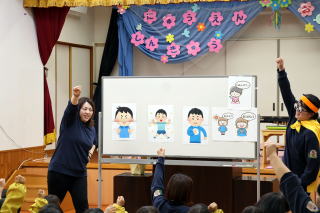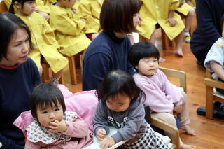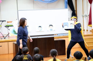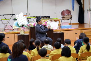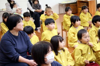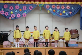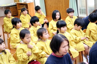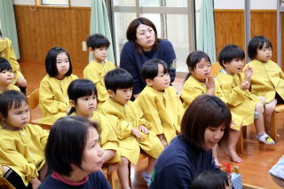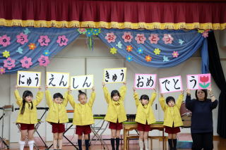 今日4月1日は入園・進級式でした。新しいお友だちと保護者の方々をお迎えしての式でした。オープニングは、新年長児さんによる合奏『海の見える街』で歓迎しました。そのあと、上田剛園長によるお祝いの言葉と絵本の読み聞かせもありました。また、園の先生方からは歓迎の催し物があり、楽しい時間を過ごしました。外は雨模様でしたが、お部屋の中では元気いっぱいの子どもたちでした。このたびのご入園・ご進級おめでとうございます。