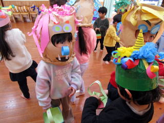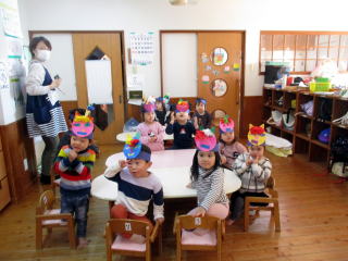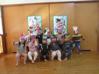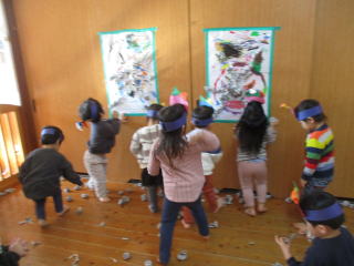 2月3日は節分でした。『鬼は外 福は内』・・・それぞれのお部屋で自分たちの心の中の追い出したい鬼に向けて豆(紙玉)を投げました。どうか今年も一年間健康で過ごせますように。