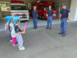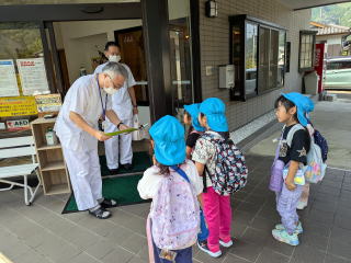 11月の勤労感謝の日を前に、主な事業所等を職場訪問をおこないました。年長児さんたちは球磨村役場など一勝地地区をまわり、年中児さんと年少児さんたちは渡保育園近辺の施設を訪問しました。いろんな人たちにメッセージを伝え、感謝の気持ちをあらわしました。いつもお仕事お疲れさまです。